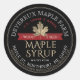 Adicione o nome da sua empresa, endereço, informações de contato, volume de xarope e xarope de bordo. Rótulo preto elegante com folha de carapaça de açúcar dourado e banner vermelho sob o texto editável "madeira disparada" (ou PURE LOCAL)