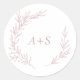 Estes mínimos selos de rosa monograma empoeirados de folha são perfeitos para um casamento elegante. A design apresenta uma simples silhueta verde em rosa claro e pincelado com estilo clássico minimalista. Personalize o rótulo com os nomes da noiva e do noivo.