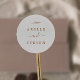 Estas selagens mínimas de vassouras de vassoura são perfeitas para um casamento de vassoura. A design apresenta uma simples silhueta verde folha em laranja queimado no fundo de creme com estilo minimalista da boêmia do deserto. Personalize o rótulo com os nomes do casal.
