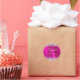 Crie seus próprios adesivos de bondade de festa de aniversário Doce 16. Garota cintilante prateado cintilante em um gráfico de arte digital em formato metálico rosa quente. Personalize os estilos de fonte para criar o seu próprio adesivo design para sua celebração especial. Uma caligrafia elegante clássica emparelhada com uma fonte serif de todos os bonés.