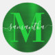Crie seu próprio nome personalizado feminino e adesivos monogramados de selo de envelope para o evento especial dela. Gradiente esmeralda gráfico de folha de papel digital colorida de arte digital. Monograma contemporâneo verde-claro e branco com design de caligrafia elegante com estilo de assinatura em um adesivo redondo clássico.