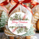 Bonito aquarela de Natal com galhos de pinheiro botânico e folhagem, autocolantes de férias personalizados. Basta adicionar seu sobrenome na área de personalização.