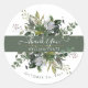 Arranjo rústico de verde aquarela de eucalipto azul, folhagem verde floresta. Evento DIY ou apenas adesivos de lembrancinha de casamento de agradecimento com fonte de letra manuscrita moderna e divertida e respingos em verde e folha de ouro falso e cor de fundo DIY. Copyright © 2016-2020 Bombino Designs™. Todos os direitos reservados.