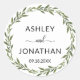 Obrigado de escrita de caligrafia adorável para casamento, adesivos de casamento / selos para adicionar aos seus envelopes, convites, cartões e/ou presentes. Verde, verde, coroa, risada em fundo branco. Perfeito para qualquer casamento na primavera, primavera ou no verão. Etiquetas de modelo editáveis.