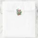 Gráfico de estilo ilustrado de flamingo cor-de-rosa com folhas tropicais verdes sobre fundo branco