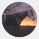 Belo cavalo negro Morgan Apollo em primeiro plano com um espantoso nascer do sol roxo em segundo plano. Sem legenda, então você pode adicionar a sua própria, ou sair sem uma imagem enquadrada, dramática ou presente para o amigo.