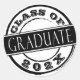 Design simples e limpo, com um círculo preto simulando um carimbo com tipografia negra que lê "classe de" e o ano de graduação em fundo branco. Basta acrescentar o ano de graduação. Use-o como um adesivo de decoração em favor da festa de formatura ou selo de envelope.