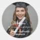Formando sofisticado Obrigado Photo Classic Round Sticker. Este modelo de fotografia moderno para a festa de formatura é perfeito para dizer obrigado aos seus hóspedes e embrulhar os presentes do seu partido com um toque único
