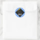 Adesivos clássicos de formatura para presentes e lembranças de festa com boné preto e borla dourada em fundo azul claro. Edite o texto para adicionar o ano da turma de formandos.