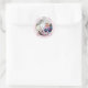 O adesivo tem um marcador para você adicionar sua própria foto. A tipografia é projetada como uma camada de fotos e diz "Seja Feliz" em uma fonte moderna. Você pode personalizar ainda mais o design, adicionando seus nomes de família. O adesivo é cor-de-rosa pastel com cinzas prateadas, flocos de neve desenhados à mão. Itens correspondentes e coordenadores estão disponíveis em nossa loja.