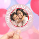 Adicione um toque final doce e elegante aos seus presentes com este charmoso adesivo de foto para o Dia das Mães. Projetado em um formato circular, apresenta um modelo de foto central emoldurado por uma fina borda vermelha, rodeado por uma borda rosa suave para um visual retrô e aconchegante. O texto branco elegante diz "Feliz Dia das Mães", com espaço para adicionar seu nome para um toque pessoal. Perfeito para selar envelopes, decorar papel de presente, sacolas de lembrancinhas, caixas ou cartões, este adesivo personalizável transforma qualquer presente em uma lembrança atenciosa que a Mamãe vai amar.