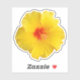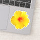 Um adesivo cortado com uma foto original de uma flor de hibisco amarela com um centro vermelho laranja que cresce no meu jardim. É uma bela flor de verão que é popular em jardins tropicais. Decorre qualquer coisa nesta temporada com esta flor alegre! Divertido, pegador tropical qualquer um que ama flores!