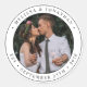 Adicione o toque final ao seu casamento com este adesivo de fotos personalizado e divertido. Perfeito como favores de casamento para todos os seus convidados. Personalize esses favores de casamento com sua foto favorita de casamento, sua nova foto e personalize com nome e data. Veja nossa coleção de casamento para combinar favores de casamento, presentes recém-casados e guardas de recem casados. COPYRIGHT © 2020 Judy Burrows, Black Dog Art - Todos Os Direitos Reservados. Vinheta redonda clássica de data de casamento com o nome do Casal recém-casado