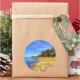 Fotografia tropical picturesca de Fiji, praia arenosa e belas palmeiras.