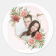Adicione sua foto a este adesivo com rosas vermelhas rosa e vintage e libélulas.