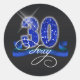 Este design de classe apresenta um gigante faux-glitter azul '30', texto de script 'Foxy' e faixa de faixa sobre um fundo preto. Procure ID191 para ver outras idades e mais produtos com este design.