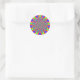 Este é um fractal caleidoscópio projetado no computador. Ele apresenta tons vermelhos e amarelos, aqua, rosa e azul, com ênfase na maneira como o adesivo engana seus olhos. É uma design que qualquer pessoa adoraria. Este padrão foi feito por Liz.
