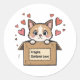 Este encantador diseño presenta un adorable gatito de dibujos animados que se asoma desde una caja de cartón con la etiqueta "Frágil: Contiene amor". La divertida y conmovedora ilustración está rodeada de corazones rojos flotantes, que le dan un toque de fantasía y cariño a la escena. Perfecto para los amantes de los gatos, este diseño transmite calidez, amor y una sensación de cariño.