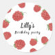 Vinheta de aniversário de framboesa com framboesas cor-de-rosa, perfeita para uma festa de aniversário de verão de frutado rosa para a sua menina.