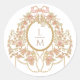 This wedding sticker features an ornate rococo Monogram frame adorned with roses on a white background. An elegant design that any sophisticated bride will love.