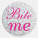 Esse adesivo super fofo "me morda", faz um acessório de excelente para qualquer aperitivo, sobremesa ou favor de comida. O fundo desta vinheta é uma ilustração fotográfica e não é utilizada qualquer brilho real.