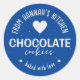 Este adesivo Feito com Amor apresenta um coração em fundo de brilho azul escuro. É perfeito para etiquetar seus produtos assados.
