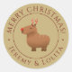 Envie esses palitos engraçados de Natal da capybara rendeer com um presente de Natal para seu amigo, membro da família ou amado. A design de etiqueta de ouro apresenta uma ilustração de capybara no centro com personalizado 'Feliz Natal e nome' em cor vermelha perfeito para amantes de capybara. A ilustração de capybara é uma obra de arte original desenhada à mão por artbybiyan.