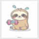 Adesivo Funny Chibi Sloth Workout Cute Kawaii Gym Cartoon