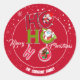 Engraçado HO HO HO Retro Natal Clássico Retro Clássico Redondo, apresenta uma tipografia manuscrita retrô "HO HO HO" com personagens de desenho animados de Natal: Papai Noel, Neve e ursinho, isolado sobre fundo vermelho com flocos de neve brancos. *** Clique no botão editar/personalizar para personalizar este design com seu texto ou nome pessoal. Feliz Feriados!