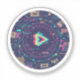 A vibrant futuristic abstract design featuring a digital play button surrounded by neon tech elements.