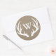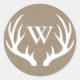 Envie com elegância country chic! Estes galhos rústicos brancos de veado são recortados sobre um fundo de serapilheira falsa com uma letra inicial maiúscula branca e elegante. Sele suas convites de casamento ou qualquer envelope com charme rústico de fazenda.