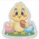 Salto no espírito de Páscoa com nosso adorável adesivo de galinha Páscoa com um pintinho alegre cercado por ovos coloridos de Páscoa, perfeito para adicionar um toque de alegria de férias a qualquer superfície.