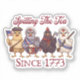 Traga risadas para a sua celebração de 4 de julho com este engraçado design patriótico "Spilling The Tea Since 1773"! Inspirado no Festa do Chá de Boston e no humor de fofocas de namoradas modernas, essa adorável linha de galinhas no estilo revolucionário é perfeita para qualquer um que ama piadas de história fofas, humor temático americano e vibrações festivas de vermelho, branco e azul. Ótimo para festas do Dia da Independência, churrascos, desfiles, eventos de verão e presentes para as melhores amigas que amam fofocar. Perfeito para roupas, adesivos, utensílios para bebidas, cartões de saudação e muito mais!