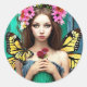 Arte de colagem. Linda dama com borboletas e flores coloridas da arte ai.