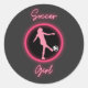 Design com uma bola de futebol muito realista e uma inscrição cor-de-rosa neon.