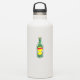 Garrafa verde de cerveja com tampa de latão e rótulo simplificado