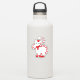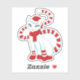 Um adesivo de gato de Natal com um belo e bonito gatinho de desenho animado branco com pestanas compridas vestindo um chapéu vermelho, cachecol, luvas e botas, seu rabo enrolado decorado com fita vermelha. A neve está caindo na floresta e a lua está brilhando alegremente. Este bonito felino está de bom humor, esperando a véspera de Natal chegar.