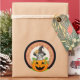 Um adorável adesivo parcial gerado pelo Halloween mostra um gatinho adorável vestindo o chapéu de bruxa sentado em uma abóbora sorridente, dentro e intrincada círculo. Utilize esses adesivos em favoritos para festas, placas e muito mais! Disponível em dois tamanhos diferentes.