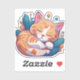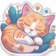 Gato gatinho bonito e colorido em cores fantásticas de laranja, rosa e lacre. Gato do estilo cartoon está dormindo uma cama de folhagem e flores.
