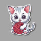 Este charmoso design apresenta um gatinho branco carinhoso com olhos grandes e expressivos, batendo brincalhão numa bola de fio. É a maneira perfeita de adicionar um traço de reluz aos seus pertences.