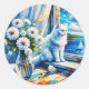 Adesivo Gato Branco na Janela ainda olhando para o Oceano