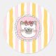 Adicione um toque de cor e doçura com este adesivo de gato adorável! O design apresenta um gato fofo sentado no centro de listras amarelas e rosas imperfeitas, criando um fundo divertido e artístico com uma vibe pastel suave. As listras ligeiramente irregulares lhe dão um aspecto artesanal divertido que se destaca lindamente.