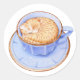 Ilustração de um gato de mesa de gengibre amontoado confortavelmente num café ou xícara de chá. Distintamente imaginativo e perfeito para amantes de todas as coisas felinos, ou relacionados a café ou xícaras de chá!
