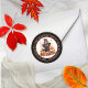 O gato preto mais bonito, de aquarela, esportando um chapéu de bruxa e rodeado por um jack-o-lanternas e abóboras circulares de volta design. Simplesmente personalize com seu nome ou nome da família e endereço de retorno, cidade, estado e zip.