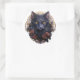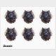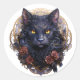Uma ilustração mística impressionante de gato preto com espirais e rosas.