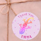 Este adesivo vem com um lindo lagarto da lagartixa-arco-íris num fundo rosa, texto Obrigado e um nome para crianças. É perfeito para comemorações infantis. Você pode personalizar o adesivo alterando o nome e também a fonte, o tamanho e a cor do texto.