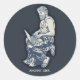 Grego antigo em um toga, sentado com um computador subabdominal e legenda "Geek antigo". Desenho vetorado de caneta e tinta, em t-shirts, capuzes, cartas, presentes.