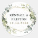 Design apresenta eucalipto, suculentes e elementos verdes em tons de poeirento e azuis/cinzas com uma faixa geométrica de borda do terrário de cor dourada impressa.