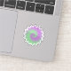 Faça uma declaração ousada com este impressionante design de espiral geométrico. Com pontas radiais em camadas que atraem o olhar para dentro, a obra de arte combina gradientes suaves de roxo e verde menta contra um fundo preto dramático. O resultado é um efeito hipnótico e fascinante que parece moderno e dinâmico.