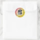 Um Quaker, George Fox, está no centro com as palavras Justiça, Simplicidade, Igualdade, Unidade, Paz são escritas em um círculo ao redor de George Fox.